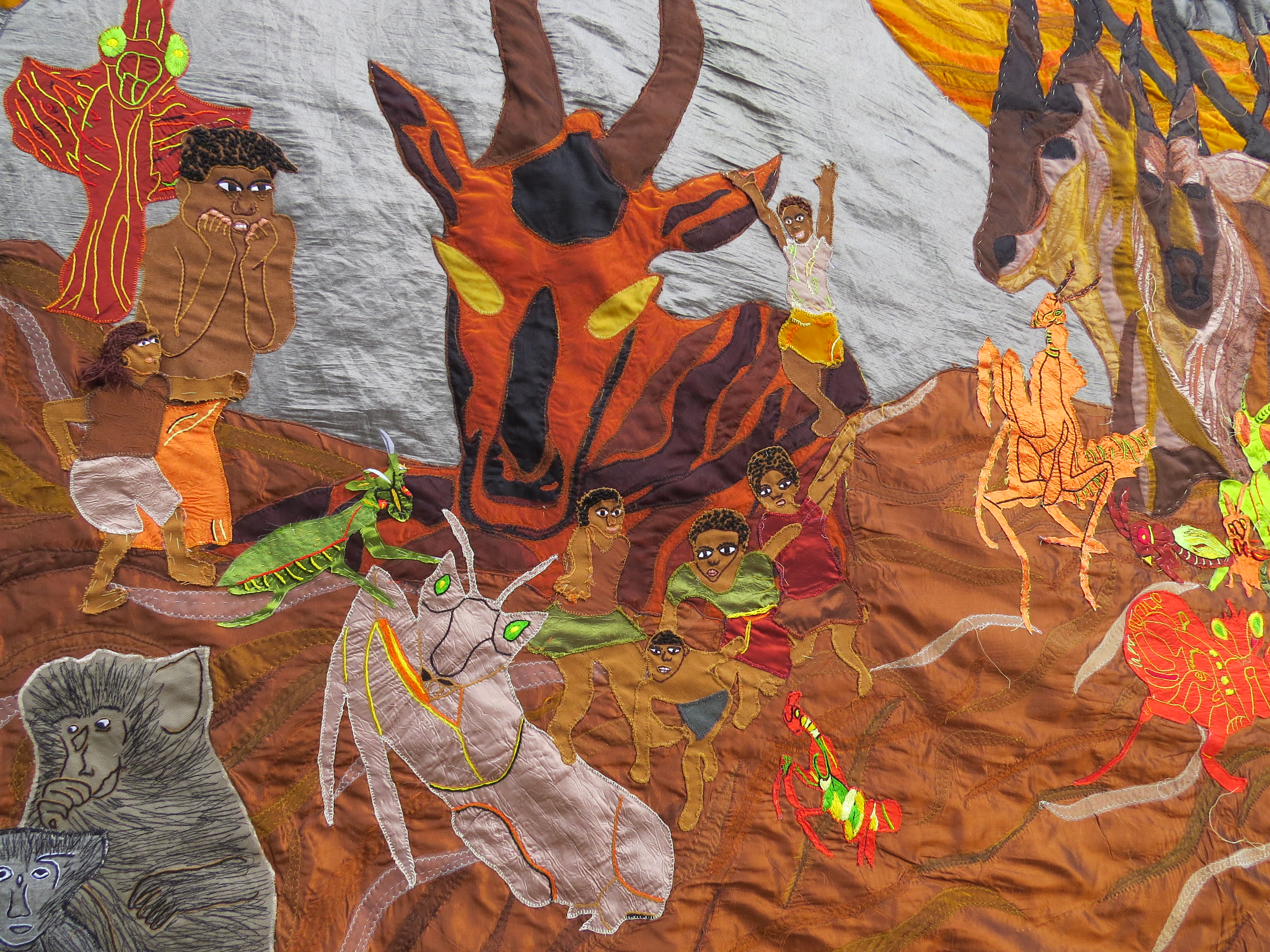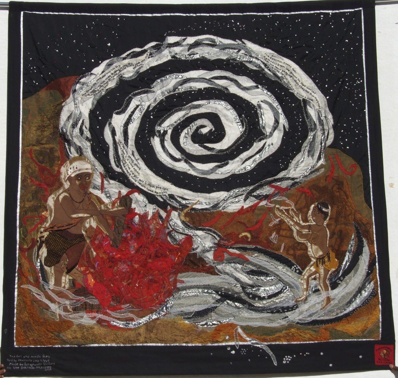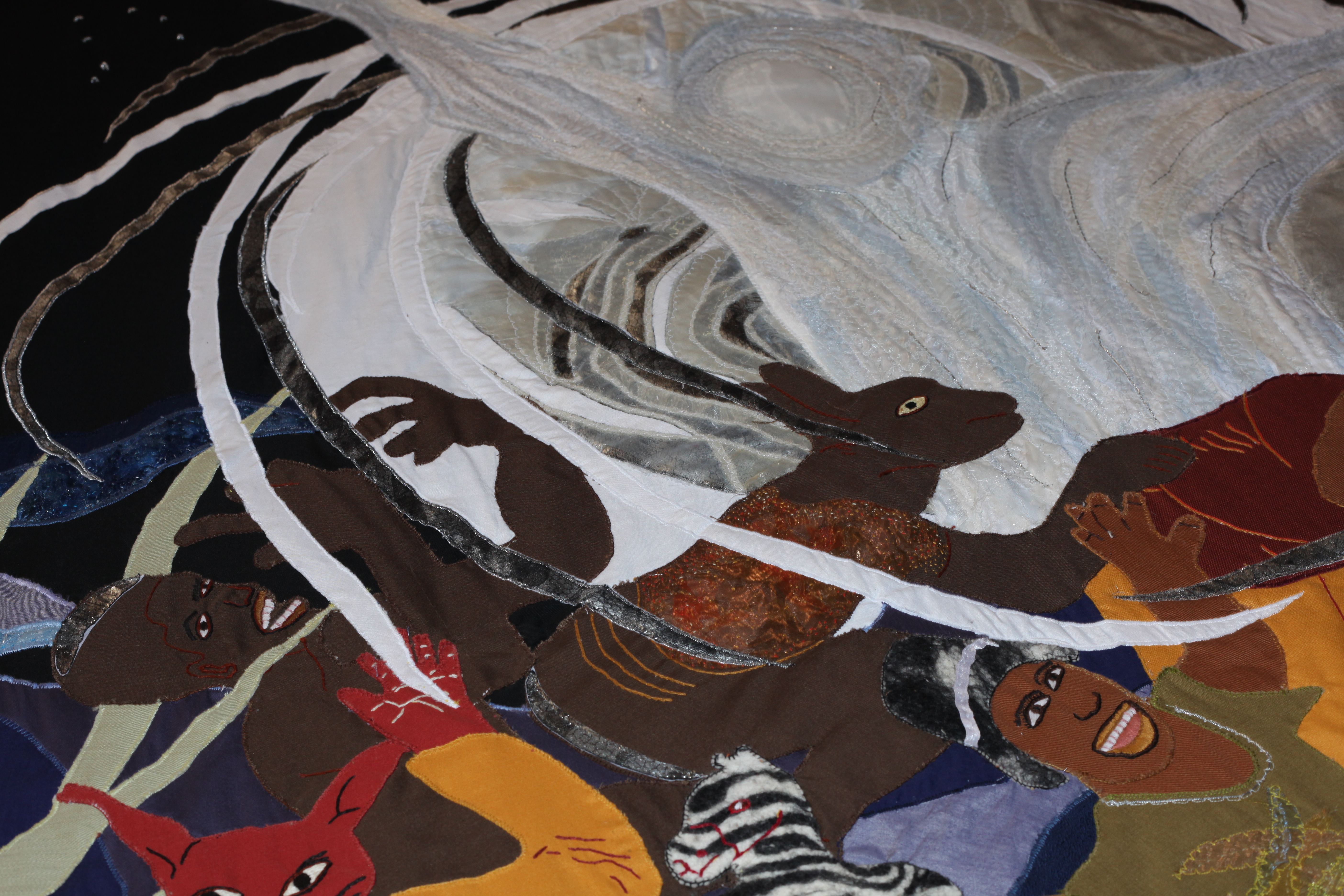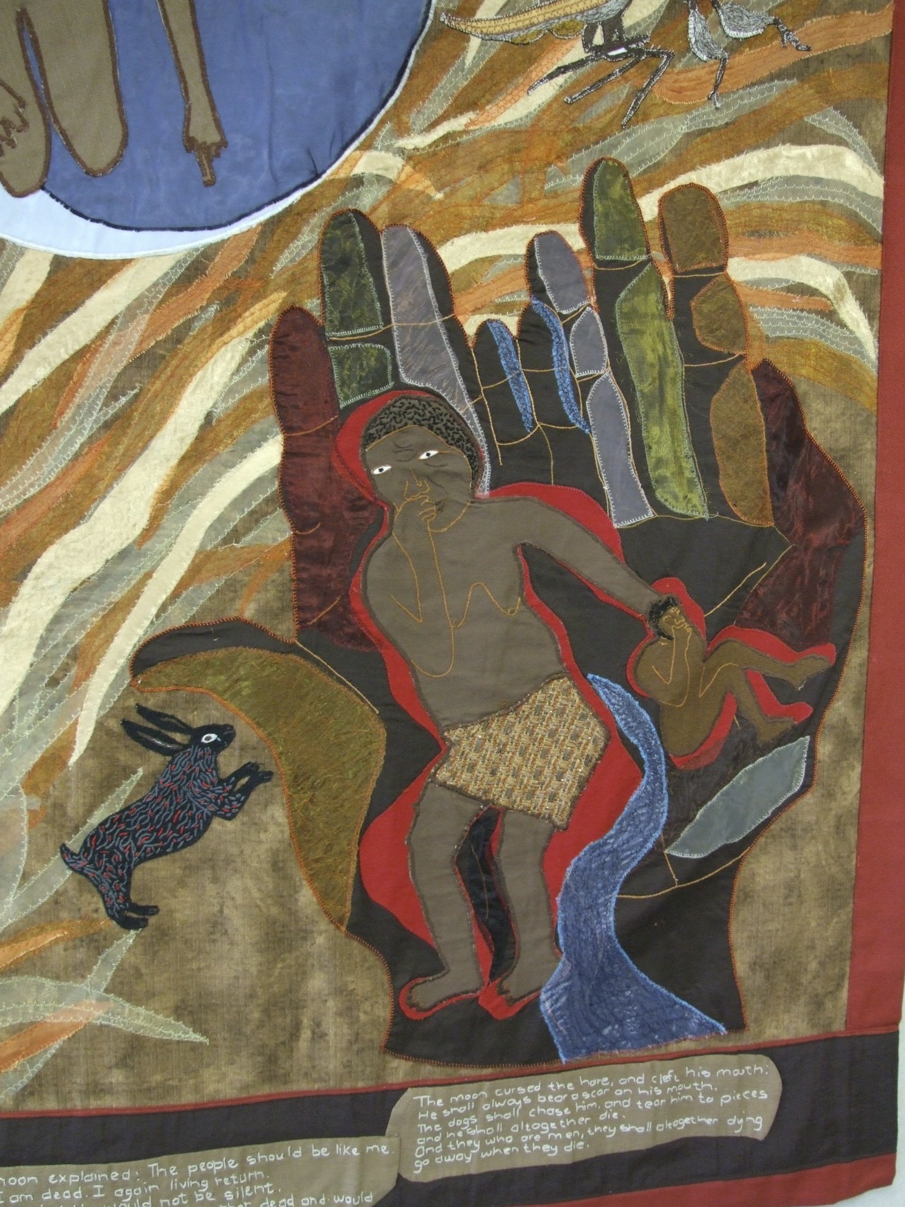 This astounding event preserved the /Xam culture (although now no one on Earth speaks the /Xam language). The collection of Myth Tapestries at the Centre brings the stories into contemporary life, and invites contemporary interpretation.