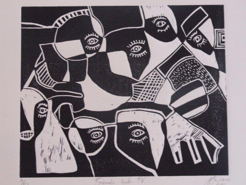 We are living artists in the contemporary world expressing our culture and mythology through a number of different media including print making, stained glass, sculpture and textiles.