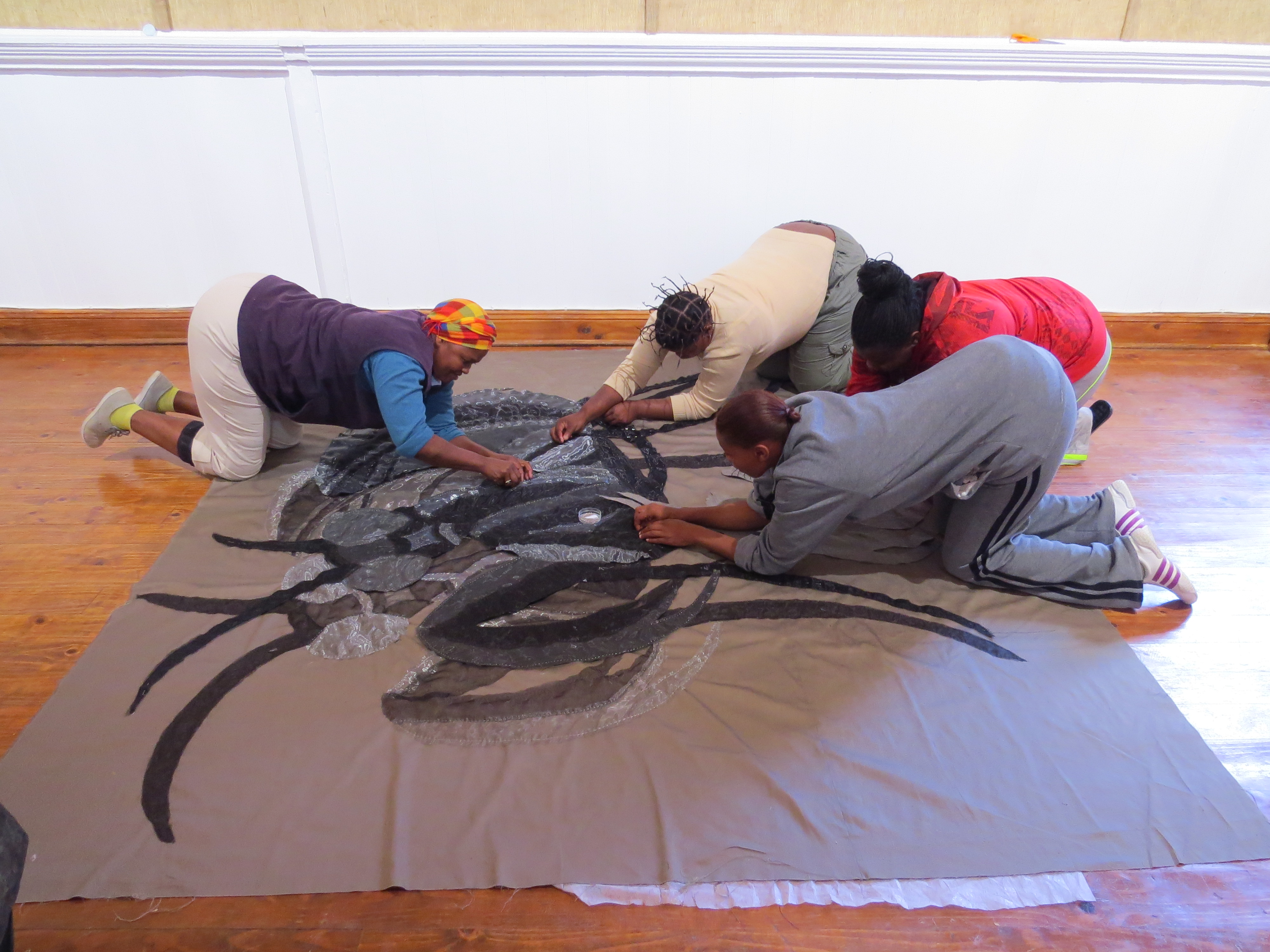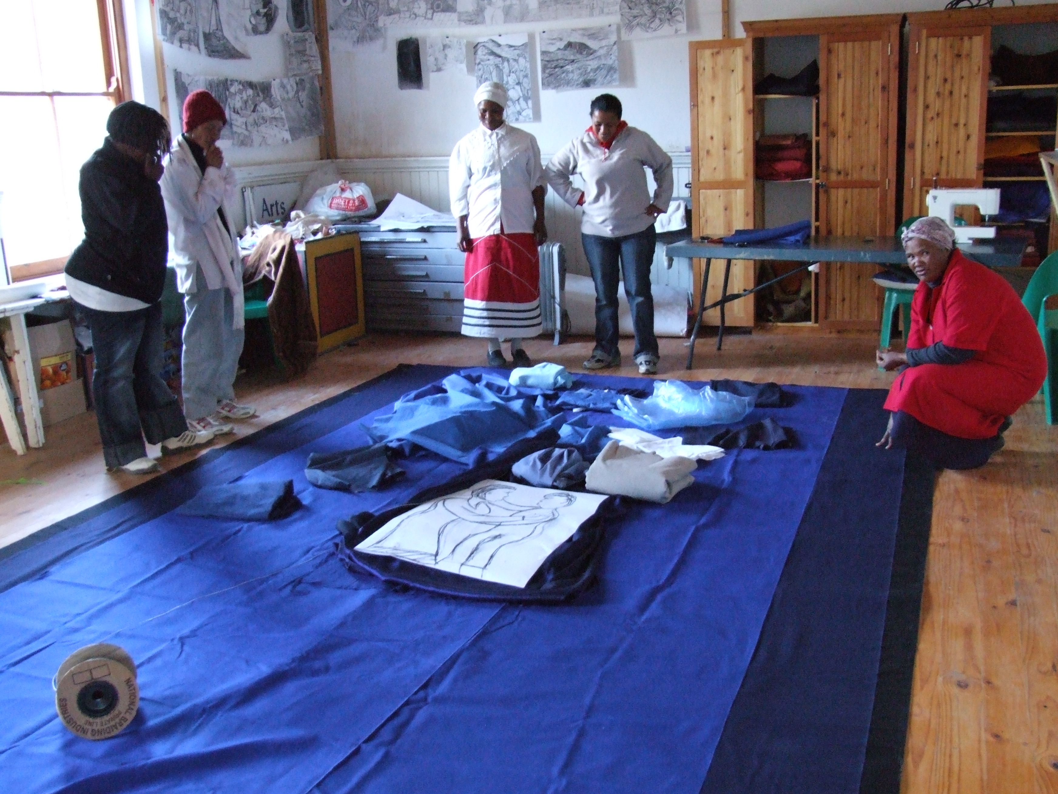 The different strengths that emerge from individuals is harnessed so that all aspects of the project thrive – from book keeping, to stock keeping, marketing to keeping the premises clean. All artists participate in the concept and design of large tapestries and all artists make drawings that are used in the designs. The cooks and cleaners also dance and perform, the printmakers clean out the septic tanks, and the textile artists keep the books.