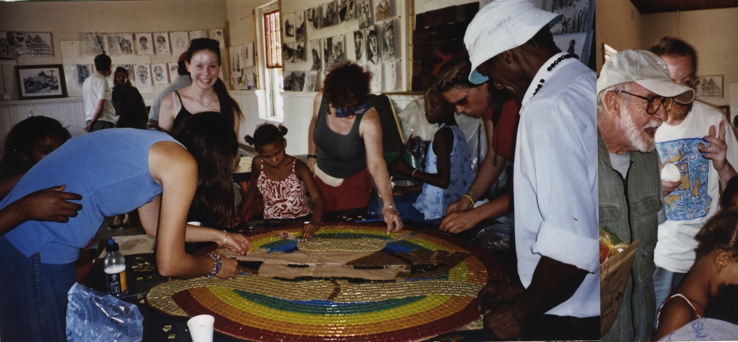 - Working On A Mosaic With Children From The Community During A Visit From Athol Fugard